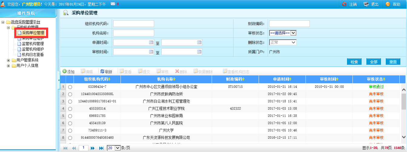 廣州市政府采購系統采購人省網注冊及監管機構審核操作指引